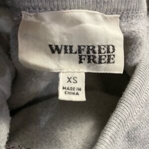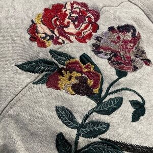 Wilfred Free floral embroidered grey crewneck sweatshirt. A few loose strings in the embroidered f.