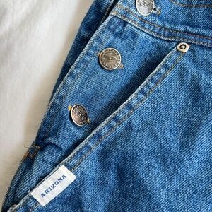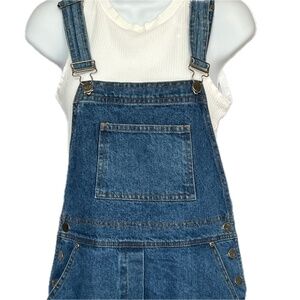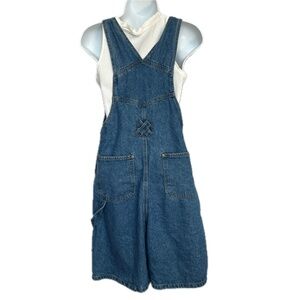 Arizona Jeans Co Shortalls Blue Jean Bibs Overalls Shorts Med Wash Sz 16 Vintage