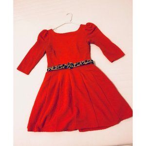 Ark & Co Darling Deneuve Orange Red Dress Leopard Belt Size Large
