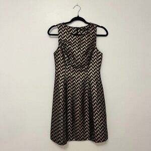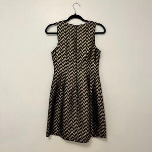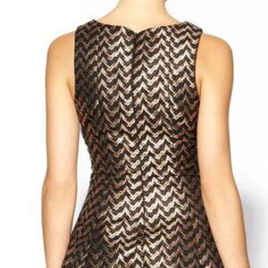 Ark & Co.'s sleeveless metallic chevron print mini Molly Metallic Dress is the prefect little party dress. Paired with an elegant solid black spike ankle bootie or ankle cuff heel, large gold pave stud earrings and box clutch, this dress will look effortlessly elegant and chic.