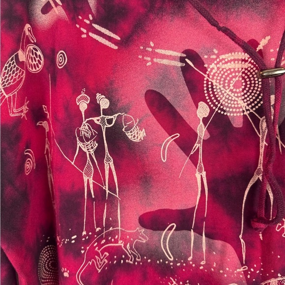 Arlunga Design Artistic Dye Red & Purple Long Sleeve Hoodie Size XL