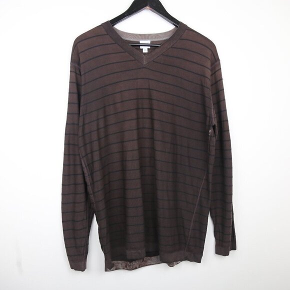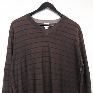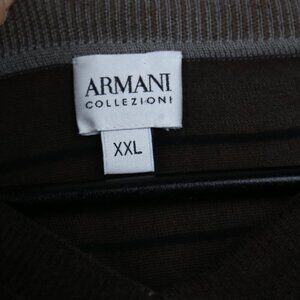 Armani Collezioni 100% Wool V-Neck Striped Long Sleeve Knit Shirt Size XXL