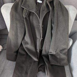 Elegant black coat with button closure. Classic design by Armani Collezioni. Perfect for any occasion.