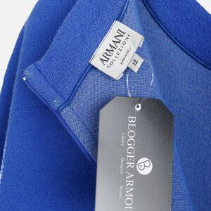A vintage 1960s cerulean midi dress from Armani Collezioni featuring a round neckline, empire waistline, long sleeves, two concealed slip pockets at the front, and a zip-closure at the back. Its sophisticated silhouette and rich colour makes this dress a timeless piece.