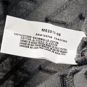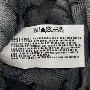 This jacket from Armani Collezioni is crafted with a grey cotton knit striped in black, and is adorned with textured pintucks all over. It features long sleeves, banded cuffs, a mock neck, a front zip closure with double pulls, and a banded hem.
