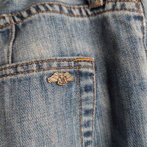 Features: Armani, Y2K, Retro, 2014, Distressed, Denim, Jeans, Straight, Ankles, Metal Logo, Medium Wash