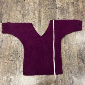 Stylish V-neck sweater in deep burgundy. Perfect for a sophisticated look. Please see photos for measurements :). 90% Angora rabbit, soft to the touch.