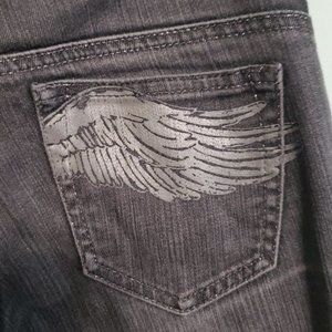Dark wash, Angel wings back pocket, leather front mini pocket
