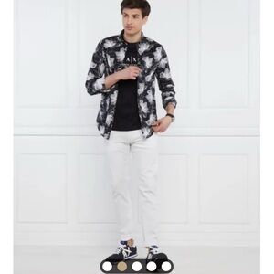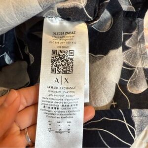 Stylish Armani Exchange dress shirt. Black base with white floral pattern. Perfect for formal occasions.