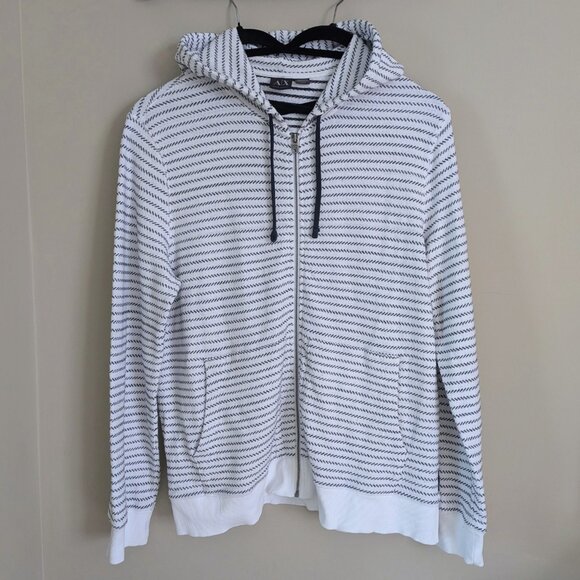 Armani Exchange Cotton Zip Hoodie Men's White with Chevron like Stripes Size XXL