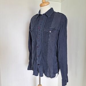 Armani Exchange | Navy blue casual button up collared women's shirt . women's size medium