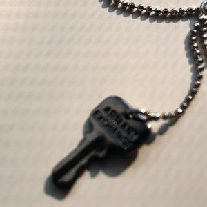 Armani Exchange Silver tone necklace. The necklace is 16 inches plus the 2.5 inch drop holding the 3 pendants...which say: A/X, Armani Exchange and With Love ( gold coloured with cubic zirconia that looks like a diamond). Beautiful and fun necklace to wear anywhere.