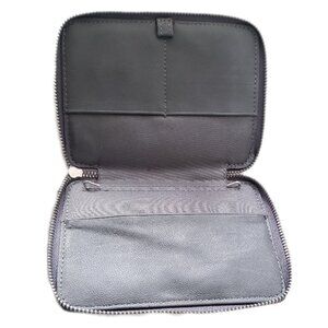 Armani Exchange Zip Around Wallet in Grey Canvas. Silver Hardware. In Good Condition aside from a discolouration/small burn mark on the side. This is not noticeable except for on close inspection and does not affect function (refer to last picture). Enamel Branded Plaque On Front; brand stamped zipper pull. Size: 6" x 4.5"