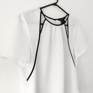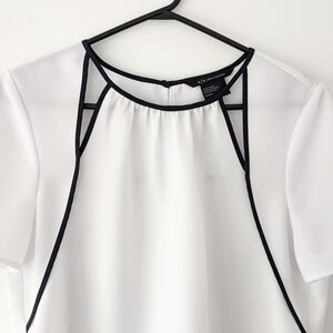 This Armani Exchange Women's white and black top is airy and elegant. Wear at the office with trousers or a suit. Also perfect for a social outing, paires with a jeans. Its sleek design offers a sophisticated look.