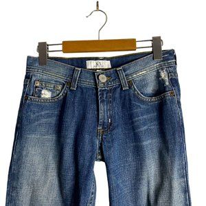 Viper Bootcut Distressed Denim Jeans w/Button and Zip Closure