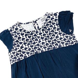Armani Junior Heart Print Navy Blue High Low Dress. This dress is sooooo sweet! With Armani's trademark navy blue hearts on white background at the chest, and insanely soft navy blue cotton high low skirt. The hearts are lightly faded, but the dress is in overall amazing condition! Get this gorgeous dress in your bundle with some tights, ballet flats and cardigan for an adorable closet discount! GUC.
