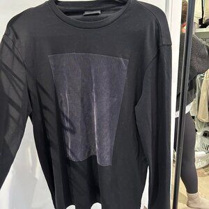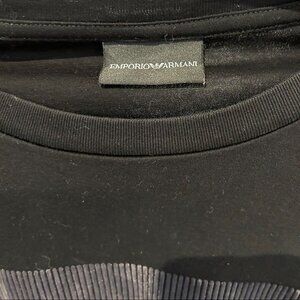 Super soft perfect condition (worn once or never) Armani long black long sleeve. Logo is in velvet material on the front. Fits M to L and unisex