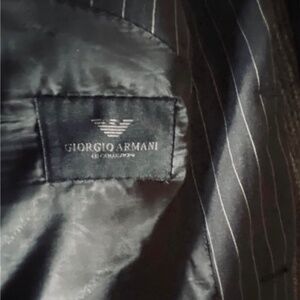 Armani pinstripe suit . Size 54 jacket with size 38 matching suit pants .