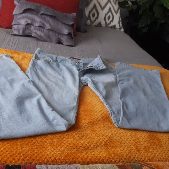 Never worn Armor Jeans in size 9/10. Mid rise. Jeans have zip and two button closure, flare bottom. Light wash. 97% Cotton, 3% Spandex, Made in Macau. Measurements in inches approx. as follows: