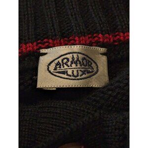 Armor Lux Wool Blend Pullover Sweater Mens M Black Button Up Mock Neck Ribbed