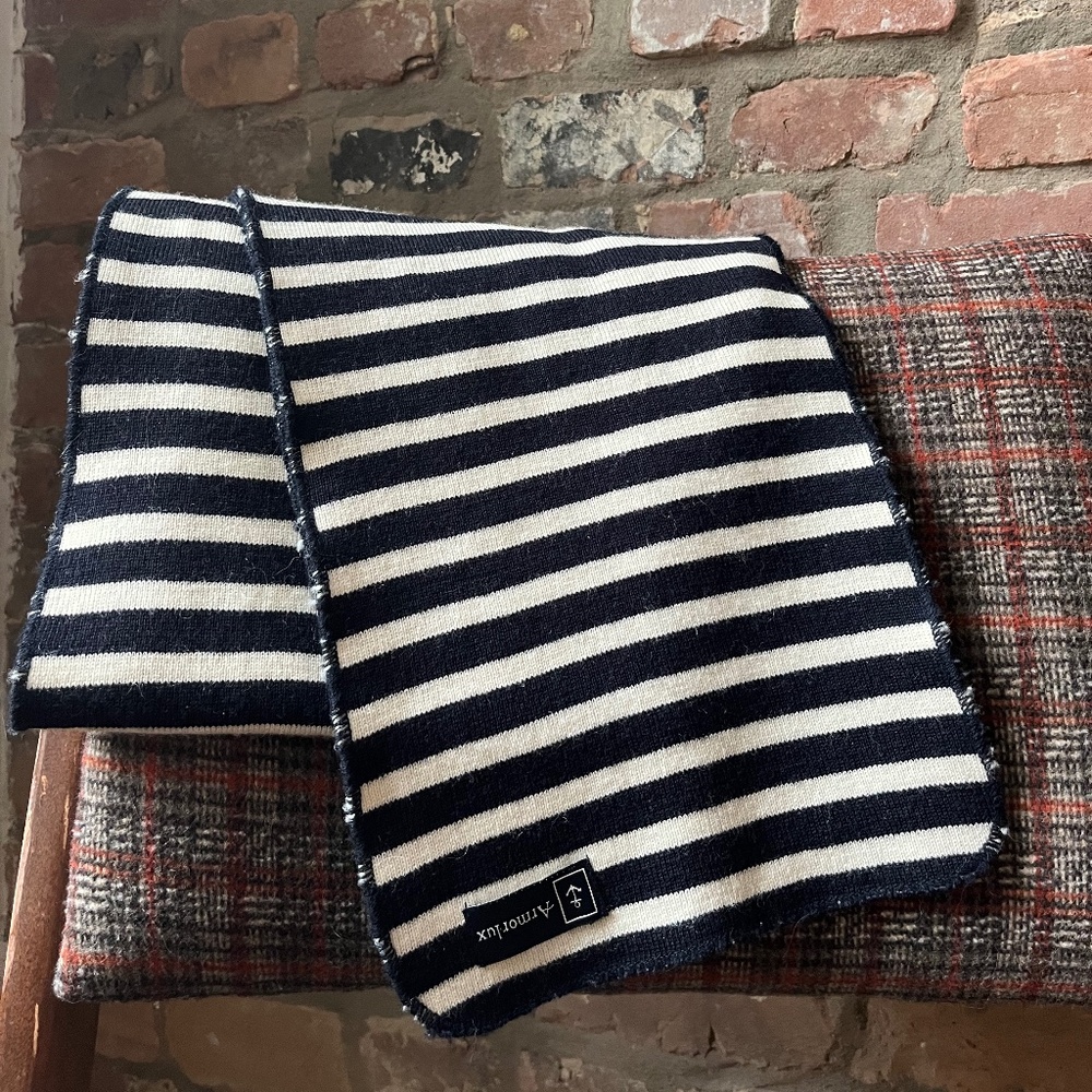 Dark blue and beige stripes. French brand.