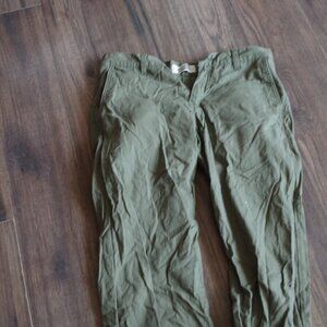 Army green ladies pants ,size 32 inch waist. The inseam is 32 inches can be cut off at bottom has some damage little holes ,at bottom.