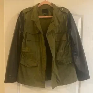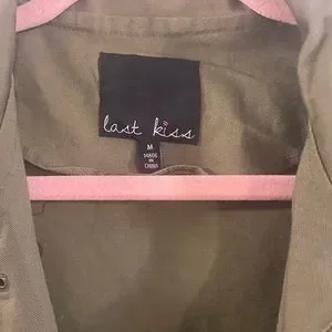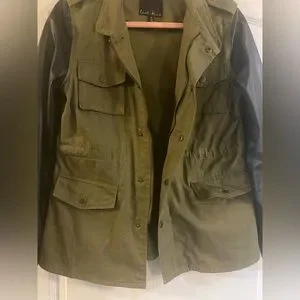 Last Kiss Army Green Lightweight Jacket with Faux leather sleeves
