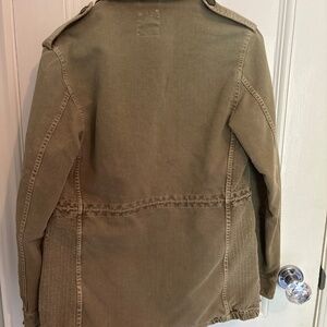 Apparently these are coming back in style! Oversized army jacket, size small. Very comfortable, great for a cool day or going out at night. Has some subtle stains, but overall still looks great.