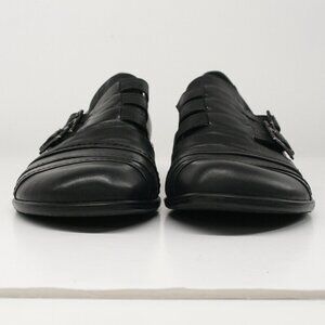 Arnold Churgin Handmade in Italy Black Leather Triple Monk Strap Slip On Loafer Sz 38.5
