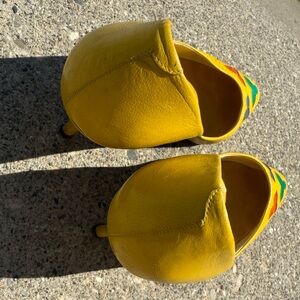 Arnold Churgin Size 9 vintage Yellow and Blue Geometric Pattern Heels GUC