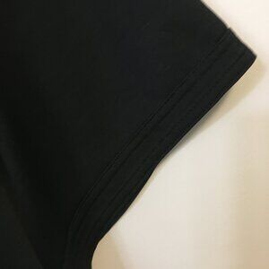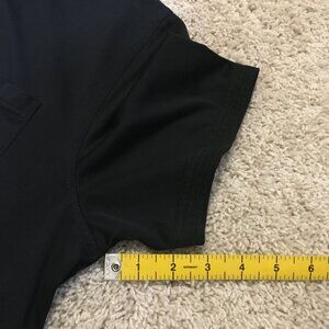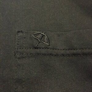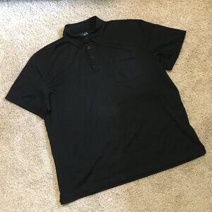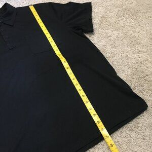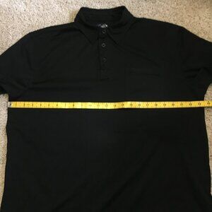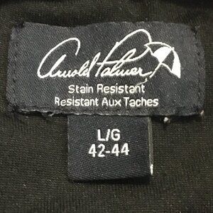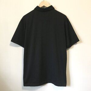 Good preowned vintage condition solid black, stain-resistant polo shirt by Arnold Palmer. A nicely structured, quality piece of apparel. There is some chafing in a couple spots, but otherwise not noticeable unless close up.