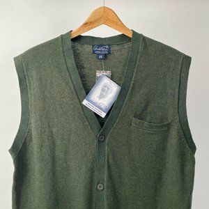 NEW Arnold Palmer Washable Wool Blend Button Up Sweater Vest, Forest Green