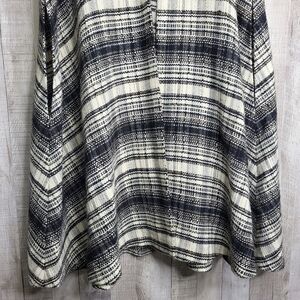 Stylish black and white plaid cape/poncho with a tie neck and arm holes. Perfect for layering.