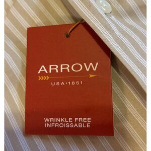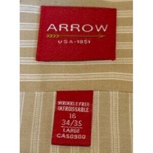 Arrow Dress Shirt Wrinkle-Free Mens 16 Large Tan Striped Long Sleeve Pocket
