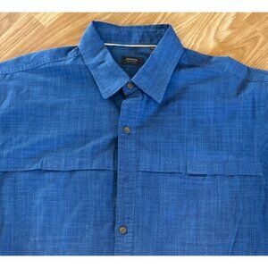 Arrow Mens Lg Blue Short Sleeve Button Up Shirt Cotton Blend Double Frnt Pockets