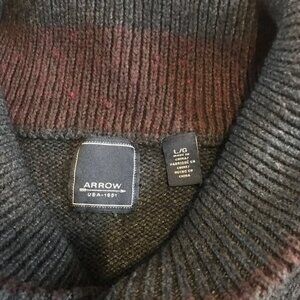 Arrow Sweater Mens Large Shawl Collar Charcoal Gray Wool & Cotton Grandpa Cozy