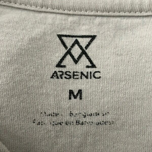 Men’s medium couch surfing long sleeve tee. Features a small design on the chest, Arsenic on one arm (see photo for cracking), small couch surfing designs on opposite arm, and large print on the back. Cracking as shown - most prominent on arsenic print sleeve.