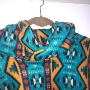 Arseno Poncho OS Hood Pockets Aztec Southwestern Blanket Cape Fleece Soft Warm