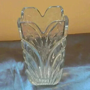 Art Deco 1980's Cut Glass Crystal Square Shaped Etched Floral Flower Vase