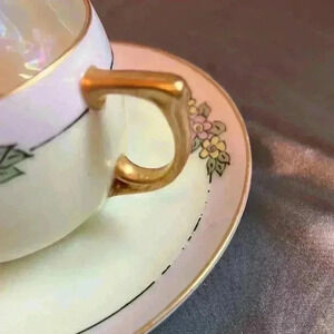 Art Deco Antique Iridescent Tea Cup and Saucer Czechoslovakia