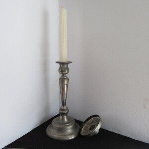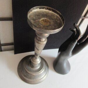 Art Deco Candle Holder, Pillar, Taper, Silver plated, Zinc, Distressed, Vintage
