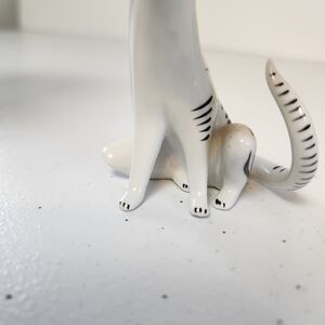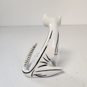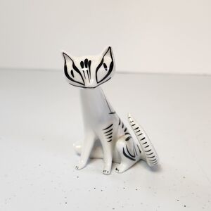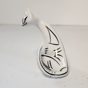 Art Deco Cat Vintage Hollohaza Porcelain Figurine White Black Mid Century Modern