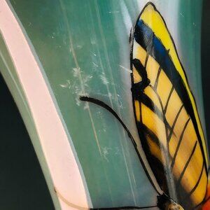 Art Deco Era Noritake Morimura Bud Vase Turquoise Peach Lustreware Butterflies