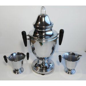 A beautiful Art Deco Farberware Percolator Urn With Creamer & Sugar Bowl