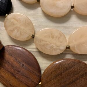 Wood, beads and Metal Lobster claw close Brown wood, black and cream beads with metal tubes EUC maybe used once