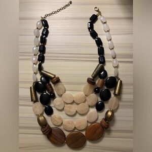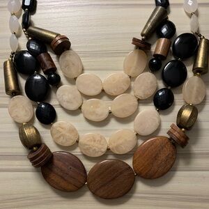 Wood, beads and Metal Lobster claw close Brown wood, black and cream beads with metal tubes EUC maybe used once
