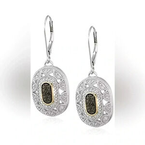 Art Deco Style Silver & Gold Plated Black Rhinestone Earrings Antique style.