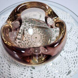 Mid Century Art Glass Bowl Purple and Amber colour.