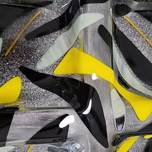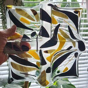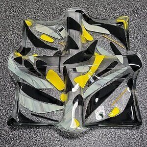 Art Glass Divided Section Dish Tray Abstract Clear Yellow Black
