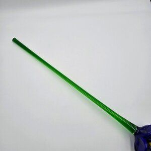 Art Glass Flower Hand Blown Dark Blue Yellow Long Green Stem Flower With Leaf Stem Read